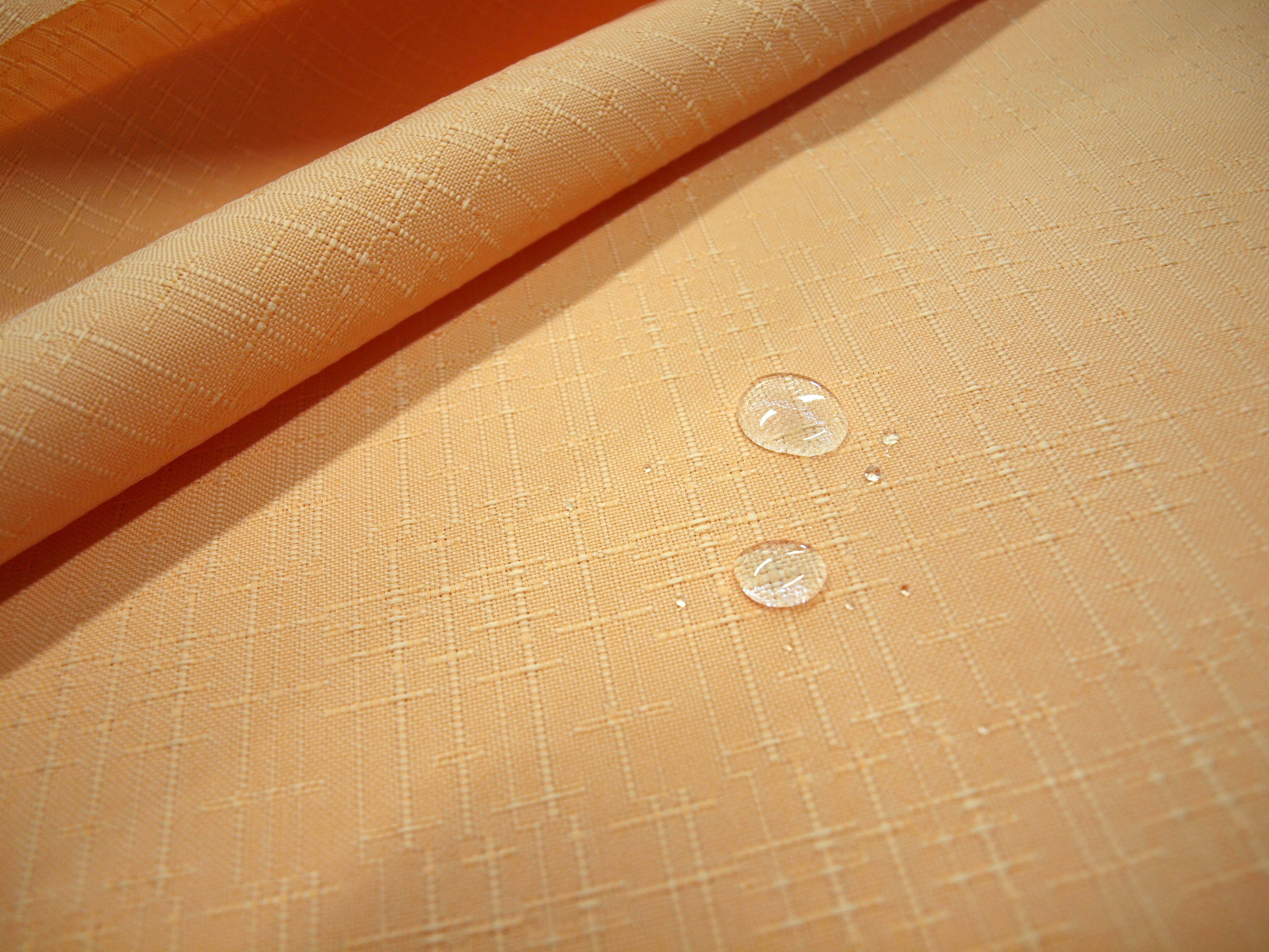 Dank der Fleckschutzausrüstung können Flüssigkeiten einfach mit einem Tuch abgetupft werden und dringen nicht ins Gewebe ein. Diese Eigenschaft hält bei Einhaltung der Waschanleitung ca. 50 Wäschen.